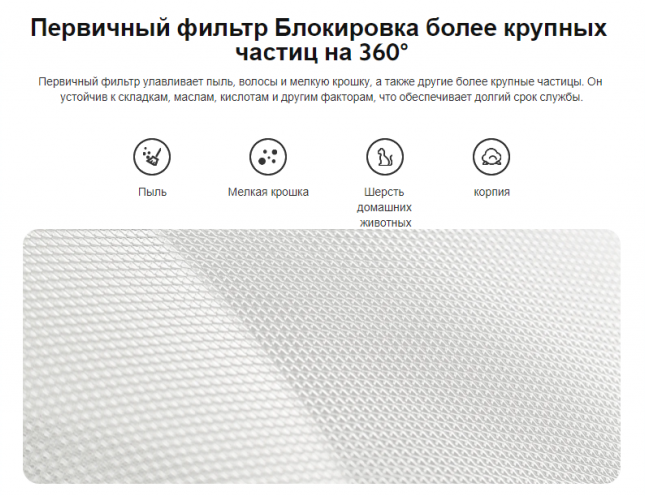 | Фильтрация | пыль, дым, микропластик, неприятные запахи, перхоть, частицы PM2.5 |